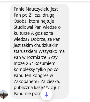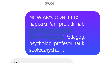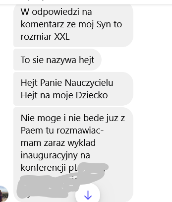 Nie dziwicie się, że cala ta sytuacja tak mnie wzburzyła. Owo nieuzasadnione moim niewinnym żartem oskarżenie o hejt, świadomie i konsekwentnie podtrzymane przez kogoś z tytułami naukowymi, osobę popularną w naszej oświatowej bańce, naprawdę mną wstrząsnęło. I w pierwszym odruchu odpisałem: