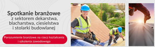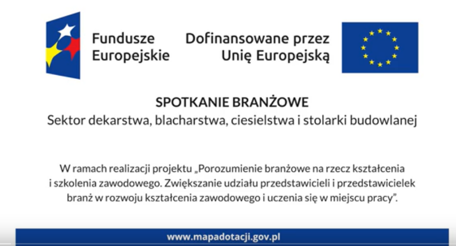 W ramach projektu „Porozumienie branżowe na rzecz kształcenia i szkolenia zawodowego”, współfinansowanego ze środków Europejskiego Funduszu Społecznego, odbyło się spotkanie branżowe poświęcone aktualnym wyzwaniom i potrzebom sektora budowlanego, w szczególności w obszarach: dekarstwa, blacharstwa, ciesielstwa oraz stolarki budowlanej.