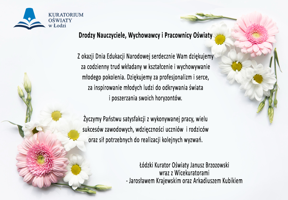 Poniżej zamieszczamy życzenia Łódzkiego Kuratora Oświaty: